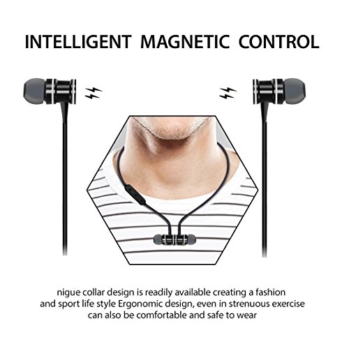 - DURABLE HOOK AND ACCESSORIES: Soft rubber cable connects two earbuds and comfortable when around your neck. The sweat proof feature ensures ear phones will not stick on skin, more comfortable when jogging and any other sports!