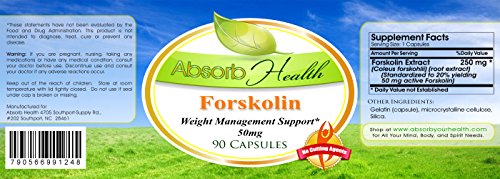 -. Binding : Health and Beauty -. Brand : Absorb Health -. EAN : 0790566991248 -. Feature : * Forskolin Helps Weight Loss and Improves Bone Density / * Free Shipping On U.S Domestic Orders Over $25, Money Back Guarantee, One Day Handling / * Use Coupons to Save on Other Absorb Health Products / * Manufactured in GMP-Compliant Facilities -. IsAdultProduct : 0 -. Label : Absorb Health -. Manufacturer : Absorb Health -. PackageQuantity : 1 -. ProductGroup : Health and Beauty -. ProductTypeName : HEALTH_PERSONAL_CARE -. Publisher : Absorb Health -. Studio : Absorb Health -. Title : Forskolin | Weight Management and Fat Burner | 90 Capsules | 50 mg Per Capsule -. UPC : 790566991248