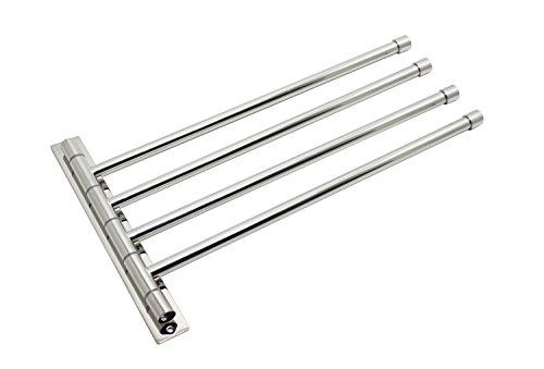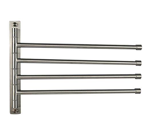Tebery 304 Brushed Stainless Steel Swivel Towel Bar, Storage Organizer Folding 4 Arm for Bathroom Holder, Wall Mounted - 15 inch