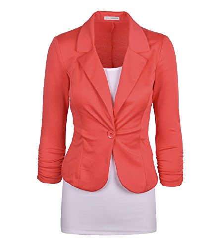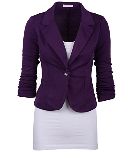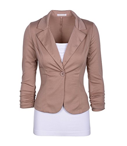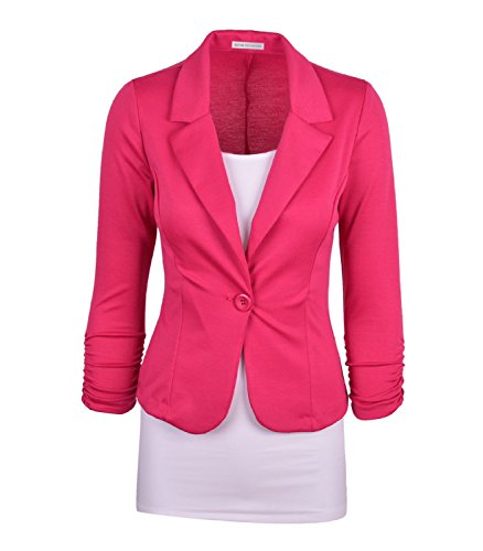 | Enlishop Women's 3/4 Sleeve One Button Casual Work Office Blazer Jacket |