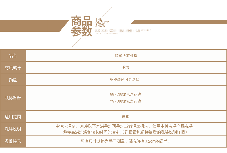 Item: European style washing machine dust cover