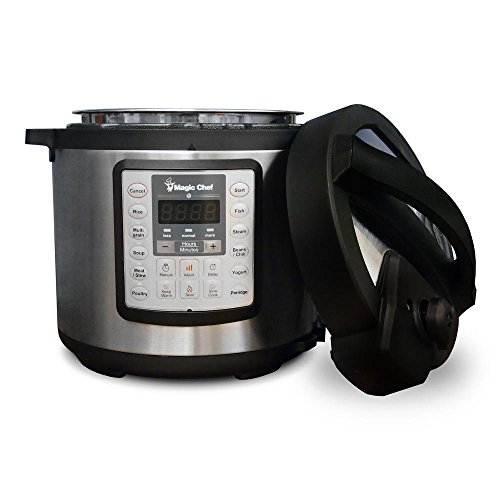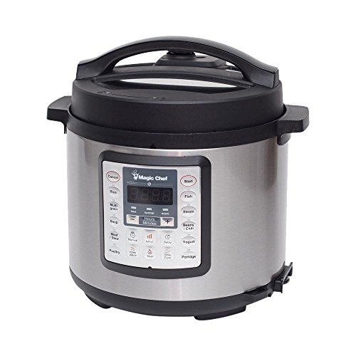 6 quart multicooker featuring pressure cook,slow cook,steam,sear,yoghurt & keep warm