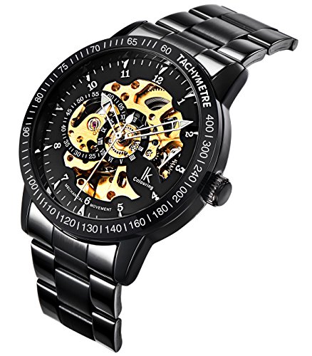 -. Title : GuTe出品 スケルトン ステンレスバンド より高級よりいい品質 上品 格好良い スタイリッシュ 美しいデザイン 全ブラック 自動巻き メンズ腕時計