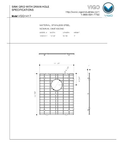 VIGO Stainless Steel Bottom Grid, 14.25-in. x 16.875-in.