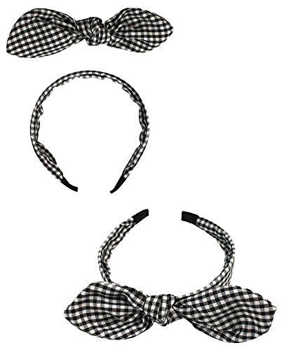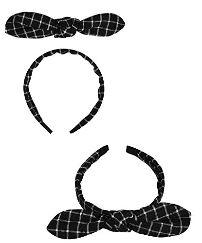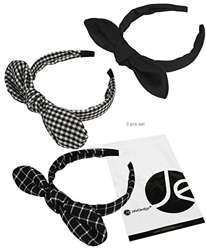 JAVOedge 3 Set of Korean Style Bow Headband (Black, Plaid, and Checkered)