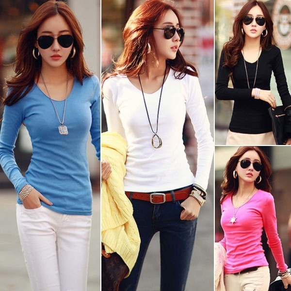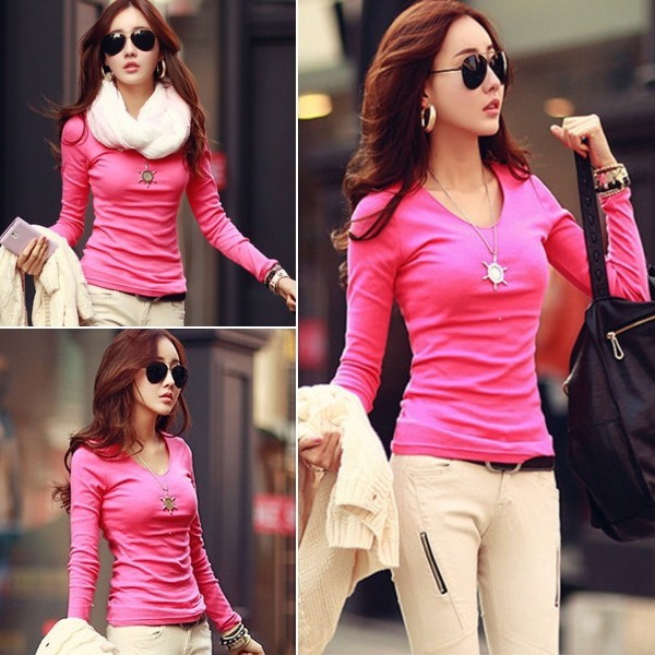 | 商品名 | Vネック ベーシック 長袖 スリムTシャツ カットソー |