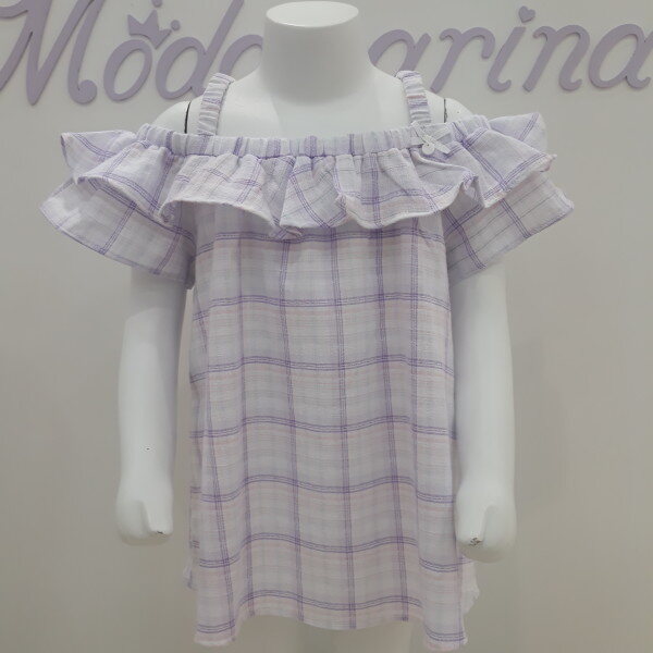 은은한 체크원단의 면블라우스입니다. 어깨 및 상단에 밴드를 넣어 입고 입고 벗기 쉬우며 넉넉한 핏으로 한여름 시원하게 입기 좋습니다. 베이직한 하의와 예쁘게 입혀 주세요.