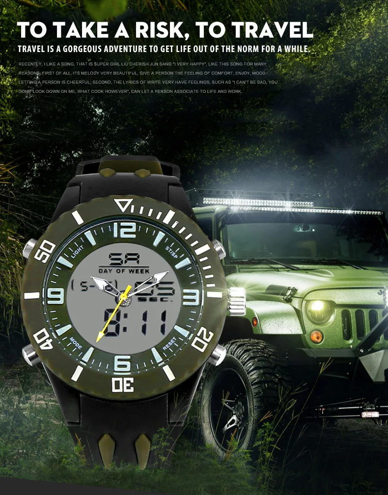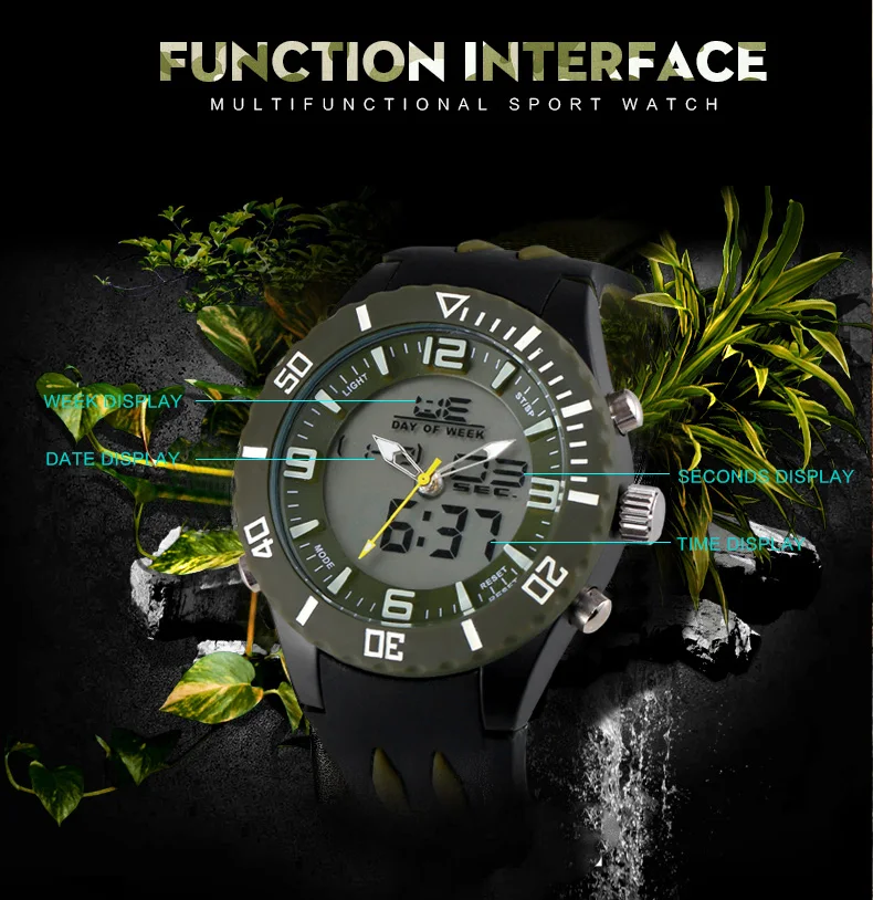 Feature:Auto Date,Shock Resistant,Stop Watch,Diver,Back Light,Chronograph,LED display,Alarm,Repeater