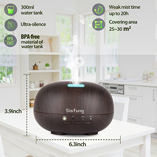 Essential Oil Diffuser - 300mL Ultra Quiet Wood Grain Aromatherapy Diffuser - Ultrasonic Cool Mist, Waterless Auto Shut-off, 7 Color LED, 4 Timer Setting...
