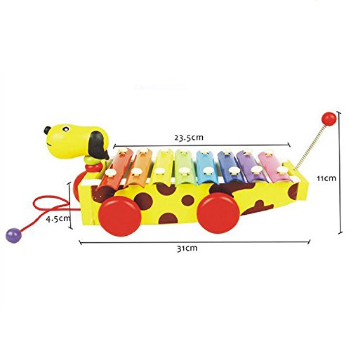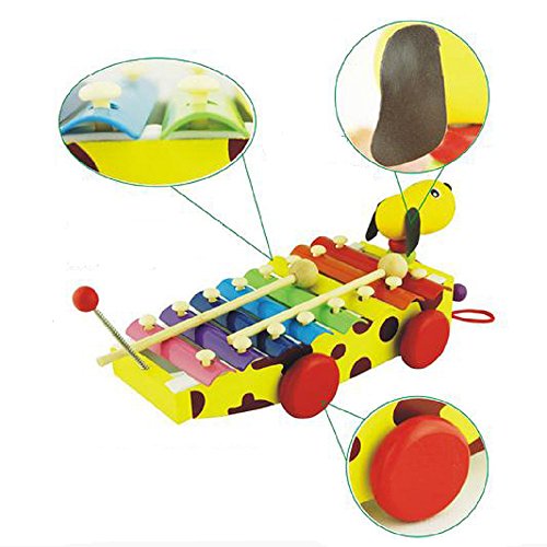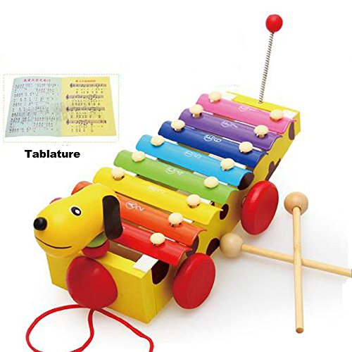 Wooden 8 notes xylophone is with 2 wood mallets that your baby can strike sweet music.