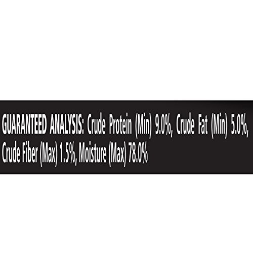 Guaranteed AnalysisCrude Protein (Min)...10.0%, Crude Fat (Min)...3.0%, Crude Fiber (Max)...1.5%, Moisture (Max)...80.0%.