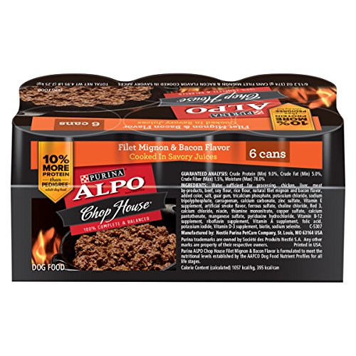 Delight your dog with this recipe by feeding him a bowl of the mouthwatering, tender meaty chunks found in each can of Purina ALPO Prime Cuts With Beef in Gravy wet dog food. This savory recipe contains high-quality protein sources and 23 vitamins and minerals to supply your best friend with the 100% complete and balanced nutrition he needs, and all with a delicious, meaty taste he'll love. This wet dog food recipe also helps your dog build strong, lean muscles to support an active lifestyle. You care about your faithful companion's happiness and well-being, so make sure you give him the appetizing flavor and texture he wants each day along with the nourishment you want for him with Purina ALPO Prime Cuts With Beef in Gravy wet dog food. Plus, every can of Purina ALPO wet dog food contains 25% more protein than the leading competitor's canned adult dog food.