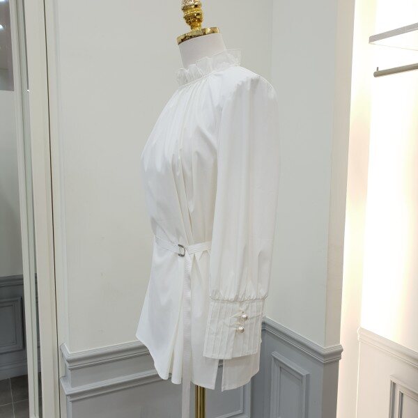 기장감이있으며 벨트세트상품입니다~~♡넥부분 프릴처리로 여성스우며밴딩처리로 입고벗기도 편안해요소매부분핀턱처리와진주 단추로포인트 전체적으로 신축성있는원단입니다