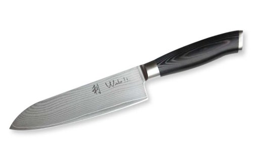 Wakoli 1dm-san-mik santoku knife japanese damast steel - the wakoli damask knife series belongs to the sharpest knives in the world. Enjoy the perfect cut! - damask knives consist of a special damask steel with especially hard middle layer. The blade is made of high alloy hardened carbon steel and offers optimal sharpness. - one knife consists of a total of 67 layers and is hence optimally protected against flaws, corrosion and rust. - these 67-layered forged steel knives do not only look exceptional, they are also razor sharp. - material of the blade: damask steel with vg10 steel-core, degree of hardness: 60+-2hrc, material of handle: mikata Dimension: total length: 29cm, blade length: 17cm, handle material: mikata handle, blade material: japanese VG-10 steel, hardness of the blade: 60+-2hrc, layer: 67