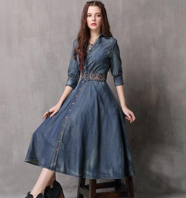 秋物デニムワンピース 2018トレンド レディース 刺繍入り ラウンドネック ブラウス ピンク 長袖 ボヘミアン デニム柄 ベルト付き Oネック Aライン マキシ ワンピース ブルー ノースリーブ フリンジ ボヘミアン ボヘミアン調 エスニック レトロ 刺繍ワンピ ボヘミアン柄 ガウン風ワンピ デニムワンピ 民族衣装 ヒッピースタイル ゴシックアイテム ほんのりダークファッション センシュアル ゴシック風コーデ センシュアル レトロファッション レトロコーデ ワンピース大好き クラシカルなフォルム コンシャス ラグジュアリー オールブラックでドレッシー ブラックのオールインワン ゴシック モノトーンコーデ 毒っ気 パープル 民族風 ヒッピー 映画女優 体型カバー 送料無料 おしゃれ 2018新作