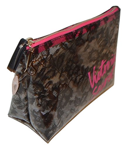 - Victoria's Secret Black Lace Jelly Like Material Zip up Makeup Cosmetics Bag