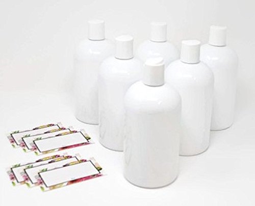 WHITE PLASTIC REFILLABLE BAIRE BOTTLES, 16 OZ White HAND-PRESS FLIP DISC CAPS, ORGANIZE Soap, Shampoo, Lotion with a Clean Look, 6 Pack,...