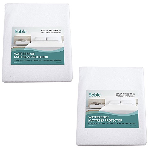 -. Title : Sable Mattress Protector, Queen Size, 100% Waterproof Hypoallergenic, Bed Bug Proof Breathable-2 packs
