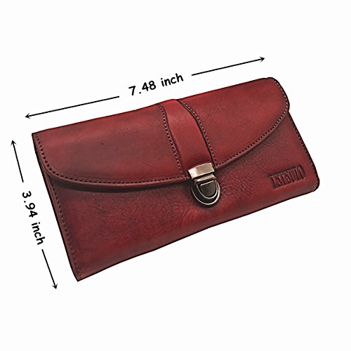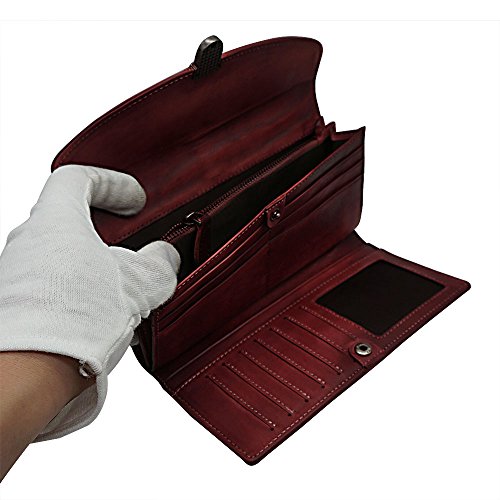 -. Feature : 100% high quality Genuine Cowhide leather, feels luxury and comfortable. Hand feeling and deeply impressed enjoy. Looks even better after using for a long time. / Multifunctional with 12 x Card Slots, 3 x Cash Compartments, 1 x Photo Slot, 1 x Zippered Section, 2 x Bill compartments. Keep your credit cards, cash, coins, notes, receipts, checkbook well organized. Ultra Practical. / zip closure / Dimensions: 7.48"L x 3.94"W, It is just the size for a wallet you can simply hold it on hand or put it in bag. / Multi-storey fold is designed for you to keep your things organized well, scratch resistant and durable with classic and vintage design, which make it convenient and suitable for daily life, make you outstanding and unique from others.