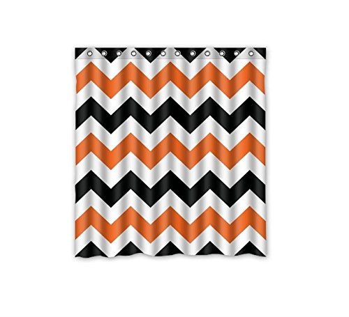 Halloween Black Orange Chevron Waterproof Bathroom Fabric Shower Curtain,Bathroom decor 66" x 72"