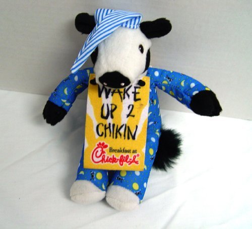 (Chick Fil A)/Pretend Play Dress-up/Puppets Puppet Theaters/DIRECT FROM USA/Chick Fil a Promotional Plush Cow in Pajamas Wearing "Wake up 2 Chikin" Sign 8" Tall