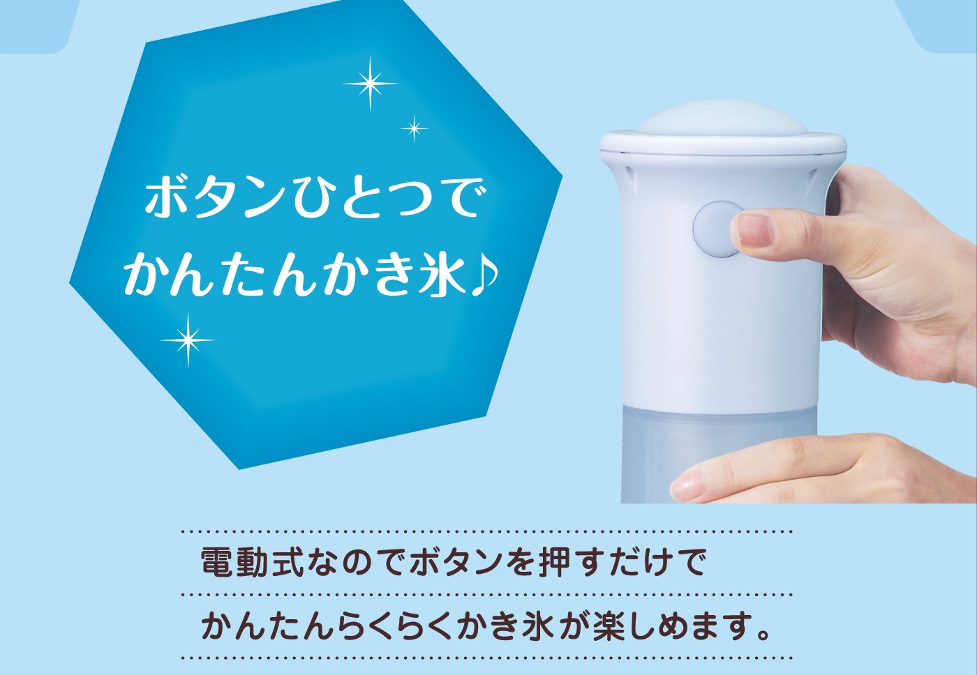● Easy to enjoy shaved ice at home