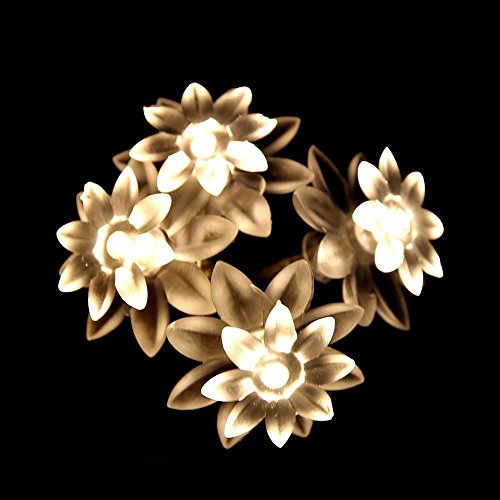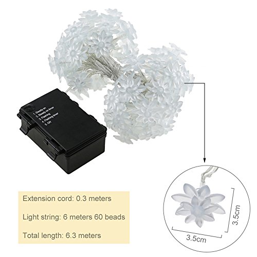 ER CHEN(TM) Battery Operated Indoor and Outdoor 60 LED Lotus Flower Fairy Lights on 22ft PVC string with Timer,for Chrismas, Party, Wedding, Patio, Garden Decor(Warm White)
