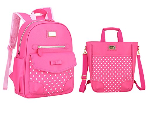 -. Feature : Made of high-grade waterproof PU, lightweight, practical, anti-tear, delicate, comfortable, and easy to clean. / STRUCTURE -- BACKPACK: 2 side slip pockets for water bottle or umbrella, 1 external front zipper pocket for wallet change coin and other little stuffs, 1 front flap compartment for small items, 1 main compartment for books magazines, laptop or iPAD.HANDBAG: 1 main pocket and 1 vice pocket for books, lunch box and other stuffs. / DIMENSIONS -- BACKPACK(S): 25(W) x 36(H) x 12(D)CM for 1-3 grade, BACKPACK(L)28(W) x 39(H) x 13(D)CM for 3-6 grade; HANDBAG: 33(W) x 31(H) x 12(D)CM. / Cute sweet polka dots and bowknot design: lovely and fashionable.The casual backpack is great for teen girls to carry on. It is a great backpack for casual life. You can take it to school, college, shopping, cycling, traveling, dating, etc. / Fully lined compartments and broad, breathable padded back mesh, reduce the pressure of body contact area, further enhance with comfort.
