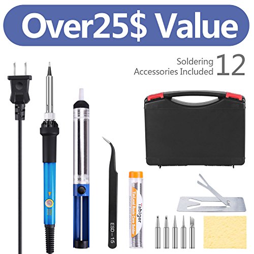 Tabiger Soldering Iron Kit 60W 110V-Adjustable Temperature Welding Soldering Iron with Tool Carry Case