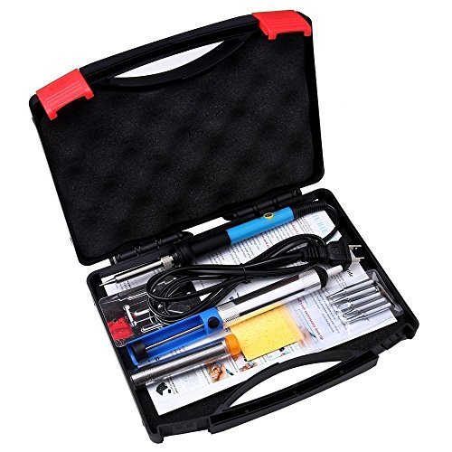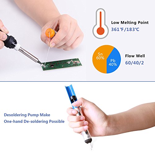 【Soldering KIT】 - Soldering iron kit comes with soldering iron, solder wire, desoldering pump, stand with cleaning sponge, 5 multiple soldering tips, anti-static tweezers, and a hard carry case to meet all your soldering project needs.