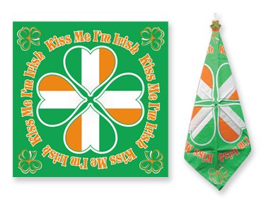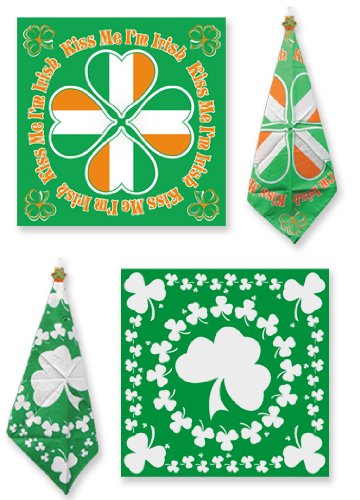 Product Description Irish-themed bandanas with colorful designs. Available in two styles: Shamrocks galore and "Kiss Me I'm Irish". Banadana measures 21" x 21". Assorted styles shipped. Price is per piece. Great for St. Patrick's Day, Irish Celebrations All Year Long! 0