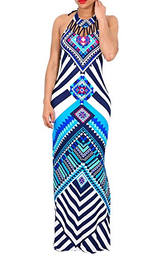 shekiss Women's Sexy Floral Printing Sleeveless Summer Dress Casual Elastic Long Maxi