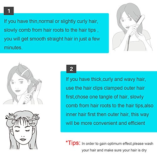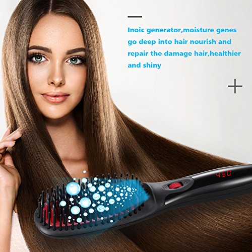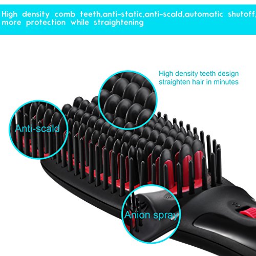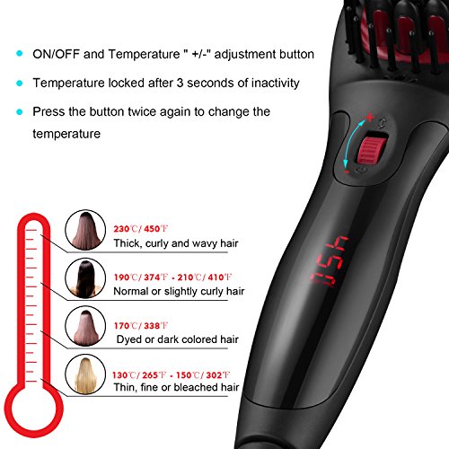 - High Density of Comb Brush: heated brush straightener is easier for curly hair, straight and frizz-free hair in just several minutes, also provides a massaging effect that good for the scalp and stimulate hair follicles