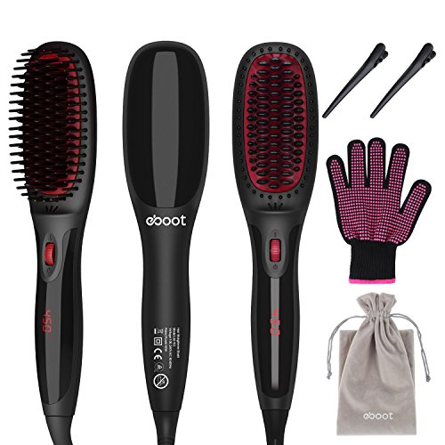 Hair straightener Brush, Ionic Generator MCH Heating Brush straightener, eBoot 2 in 1 Hair Straightening Brush with Heat Resistant Glove, Temperature Lock...