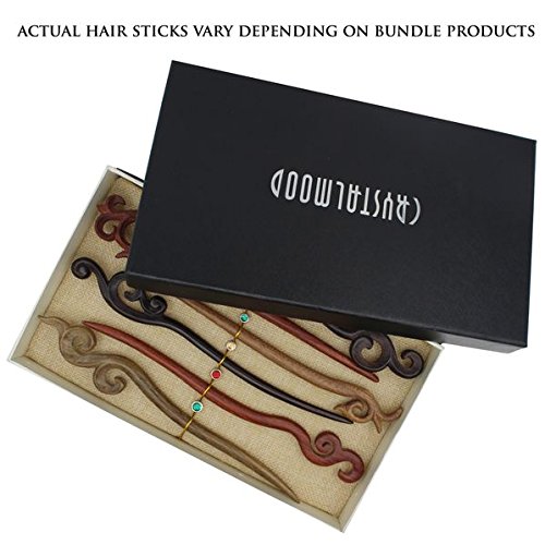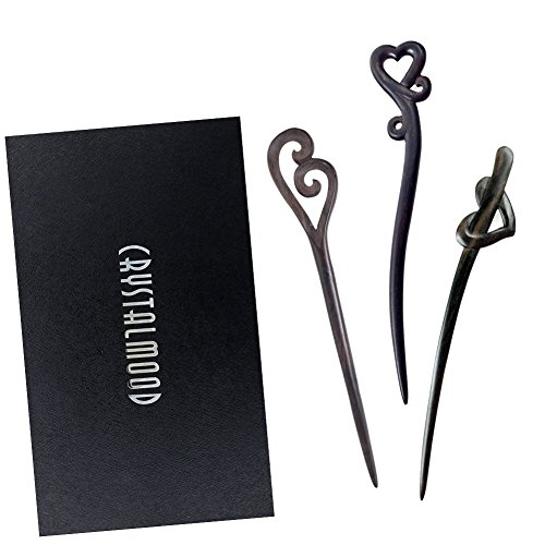 Studio : Crystalmood Publisher : Crystalmood Binding : Misc. Product Description This bundle includes three (3) ebony wood hair sticks: ASIN B0053DYZQE - Heart: 6.75" long; head part 2" by 1". B0053DYZZA - Laced heart: 7" long; head part 2" by 1.1". B004QZ9KP6 - Heart: 7" long; head part 2" by 1.2". Diameter of sticks: about 8mm at its thickest (near the head part), 5-6mm at the middle of the stick. Ebony is one of the most intensely black woods known, which, combined with its very high density (it is one of the woods that sink in water), fine texture, and ability to polish very smoothly, has made it very valuable as an ornamental wood. It has a fine closed grain which is very brittle, and the color can be pure black to black and brown. Because it grows as a small-diameter tree, it is rarely used as primary material for large pieces of furniture, but more often shaped into secondary decorative elements or as small precious objects. 0