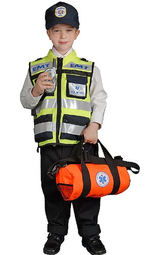 -. Binding : Toy -. Brand : Dress Up America -. Department : boys -. Feature : Product comes Complete with: EMT Vest, Cap, EMT Bag / Lots of pockets / Gentle Machine Washable ~ Flame Retardant / Set packaged in a snap-sealed poly bag -. Label : Dress Up America -. Manufacturer : Dress Up America -. Model : dua1251 -. MPN : 481-L -. NumberOfItems : 1 -. PackageQuantity : 1 -. PartNumber : 481-L -. ProductGroup : Toy -. ProductTypeName : TOYS_AND_GAMES -. Publisher : Dress Up America -. Size : Large -. Studio : Dress Up America -. Title : EMT Kids Costume Accessory Kit