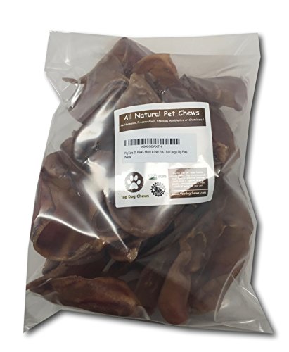 -. Binding : Misc. -. Brand : Top Dog Chews -. EAN : 0854671004412 -. Feature : USA Pig Ears / Natural Pig Ears / No Antibiotics, Steroids, Hormones / Baked in USDA Facility -. Label : Top Dog Chews -. LegalDisclaimer : 1 Package of 25 Pig Ears -. Manufacturer : Top Dog Chews -. MPN : 8232 -. PackageQuantity : 25 -. PartNumber : 8232 -. ProductGroup : Pet Products -. ProductTypeName : PET_SUPPLIES -. Publisher : Top Dog Chews -. Studio : Top Dog Chews -. Title : Pig Ears 25 Pack - Made in the USA - Full Large Pig Ears -. UPC : 854671004412