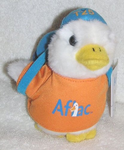 -. Binding : Toy -. Brand : Aflac -. EAN : 0541271111557 -. Feature : Plush Talking Aflac Duck Doll / Wearing blue hat and a backpack, both have T25 on them / approx. 6" high / press body and he says "Aflac" three times -. Label : Aflac -. Manufacturer : Aflac -. ProductGroup : Toy -. ProductTypeName : TOYS_AND_GAMES -. Publisher : Aflac -. Studio : Aflac -. Title : Plush 6" Talking Aflac Duck with T25 Backpack -. UPC : 541271111557