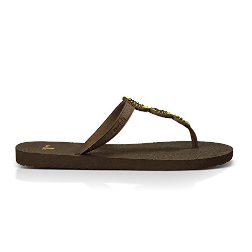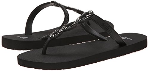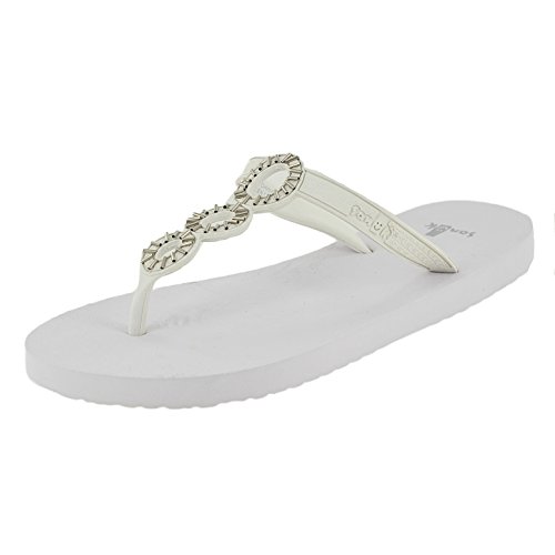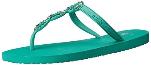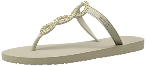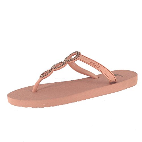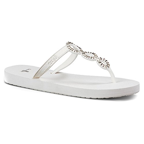 These babies come full circle when it comes to comfort... Circular triple ring strap with metallic beading and geometric texture. Happy U rubber sponge deck.Feature