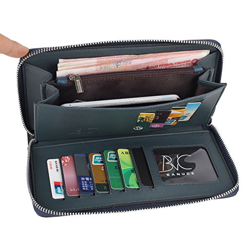 - Title : Banuce Men's Genuine Leather Zip Around Long Wallet (Blue)