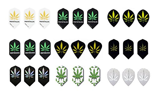 6 sets (18 pieces) of Marijuana Pot Leaf Slim Size Dart Flights - Assorted Designs