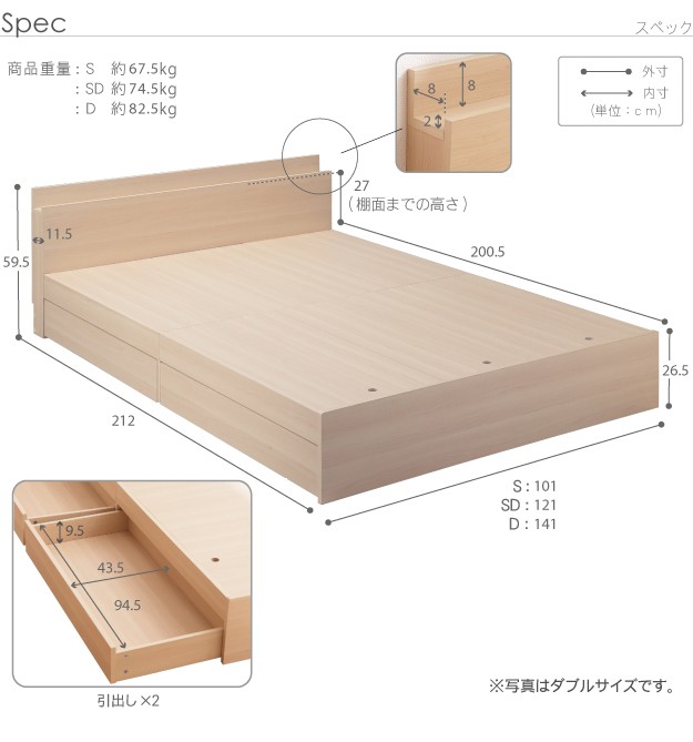 サイズ:シングル1台-幅101x奥行212x高さ59.5cm・約67.5kg