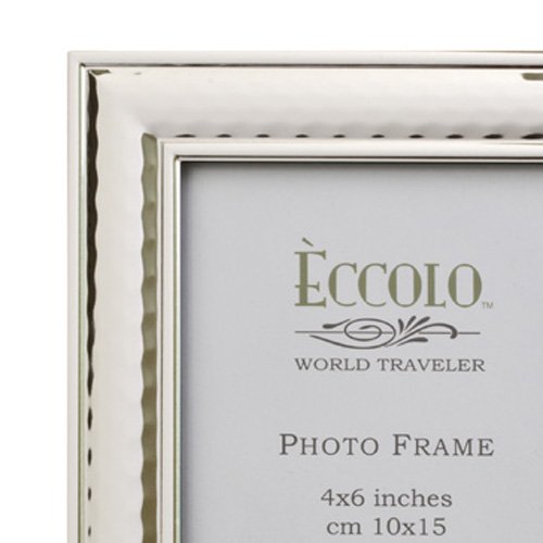 -. Binding : Misc. -. Brand : Eccolo World Traveler -. Color : Silver -. EAN : 0773822011331 -. Feature : Hand polished silver plated picture frame / Matted to display a 4 x 6-Inch photograph; wide frame has the look of hammered silver / Velvet back; tarnish resistant / Available in different sizes and styles, mix and match Eccolo frames to create a stunning display or give a gift sure to be used and appreciated / Display on shelf or table-top in portrait or landscape orientation -. IsAdultProduct : 0 -. IsAutographed : 0 -. Label : Eccolo -. Manufacturer : Eccolo -. Model : SP334 -. MPN : SP334 -. PackageQuantity : 1 -. PartNumber : SP334 -. ProductGroup : Home -. ProductTypeName : HOME -. Publisher : Eccolo -. Size : 4-inchx6-inch -. Studio : Eccolo -. Title : Eccolo World Traveler Hammered Silver Plated Frame, Holds a 4 x 6-Inch Photo -. UPC : 826635113317