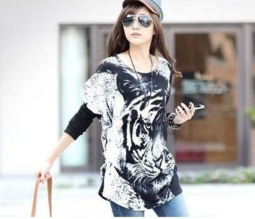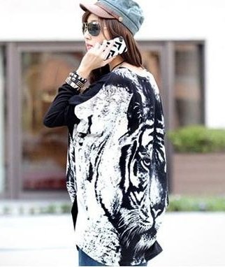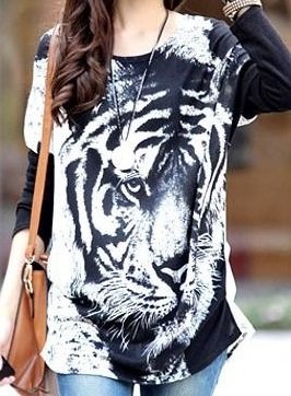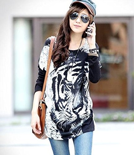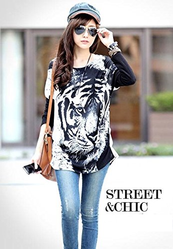 -. Feature : 肌触りの良い柔らかい素材の長袖カットソーです。 / フロント、バックの大胆な豹柄がお洒落なデザイン / 袖長・ゆったり・大きめサイズ / 素材:コットン、ポリエステル 伸縮性:あり / サイズ:肩幅約45cm 着丈約75cm 身幅約68cm 袖丈約55cm
