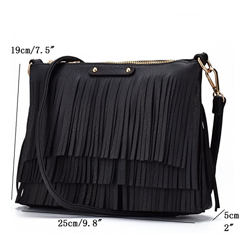 -. Title : JIARUO Fashion Tassel Fringe Handbag For Women PU Leather Shoulder Bags Ladies Crossbody Bags