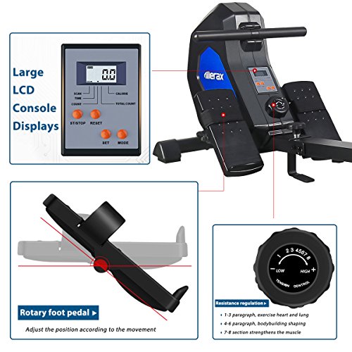 Studio : Merax Publisher : Merax Binding : Misc. Product Description Rowing has long been recognized as the perfect aerobic pursuit, with naturally smooth and flowing movements that don't tax the joints but do boost the heart rate. Now you can take your rowing experience to the next level with the Merax rowing machine. 0