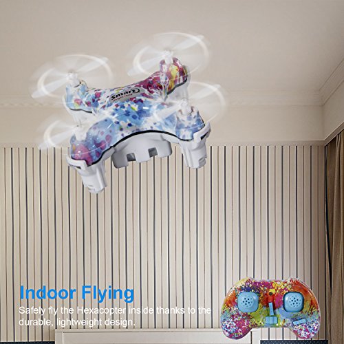 Headless mode and altitude hold mode make it easy for beginners to fly like a pro. Safely fly the Hexacopter inside or outside thanks to the durable, lightweight, and miniature design.