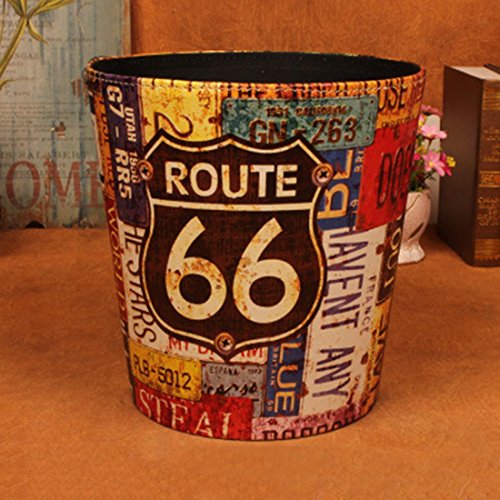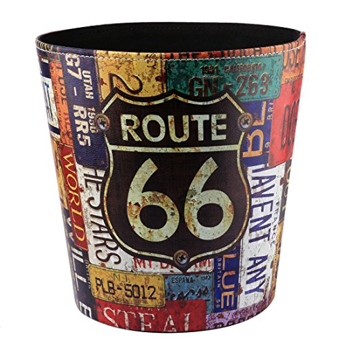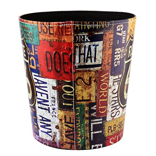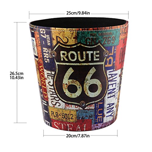 XSHION Wastebasket Trash Cans Waste Paper Basket without Lid PU Leather - 66 Route Pattern