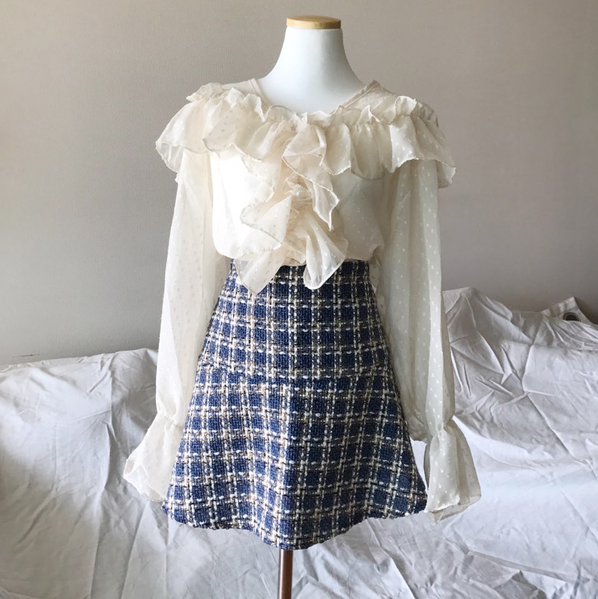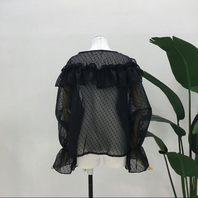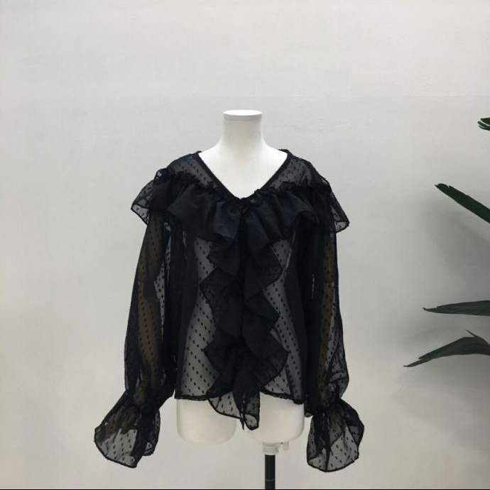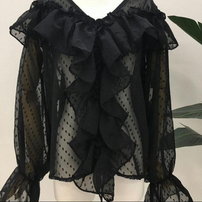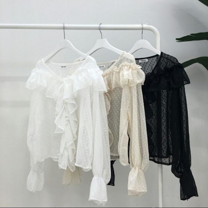 Shirring Dots Autumn Ruffle Sleeves T-Shirts Cody T-Shirts T-Shirts Frill Shawl Blouse