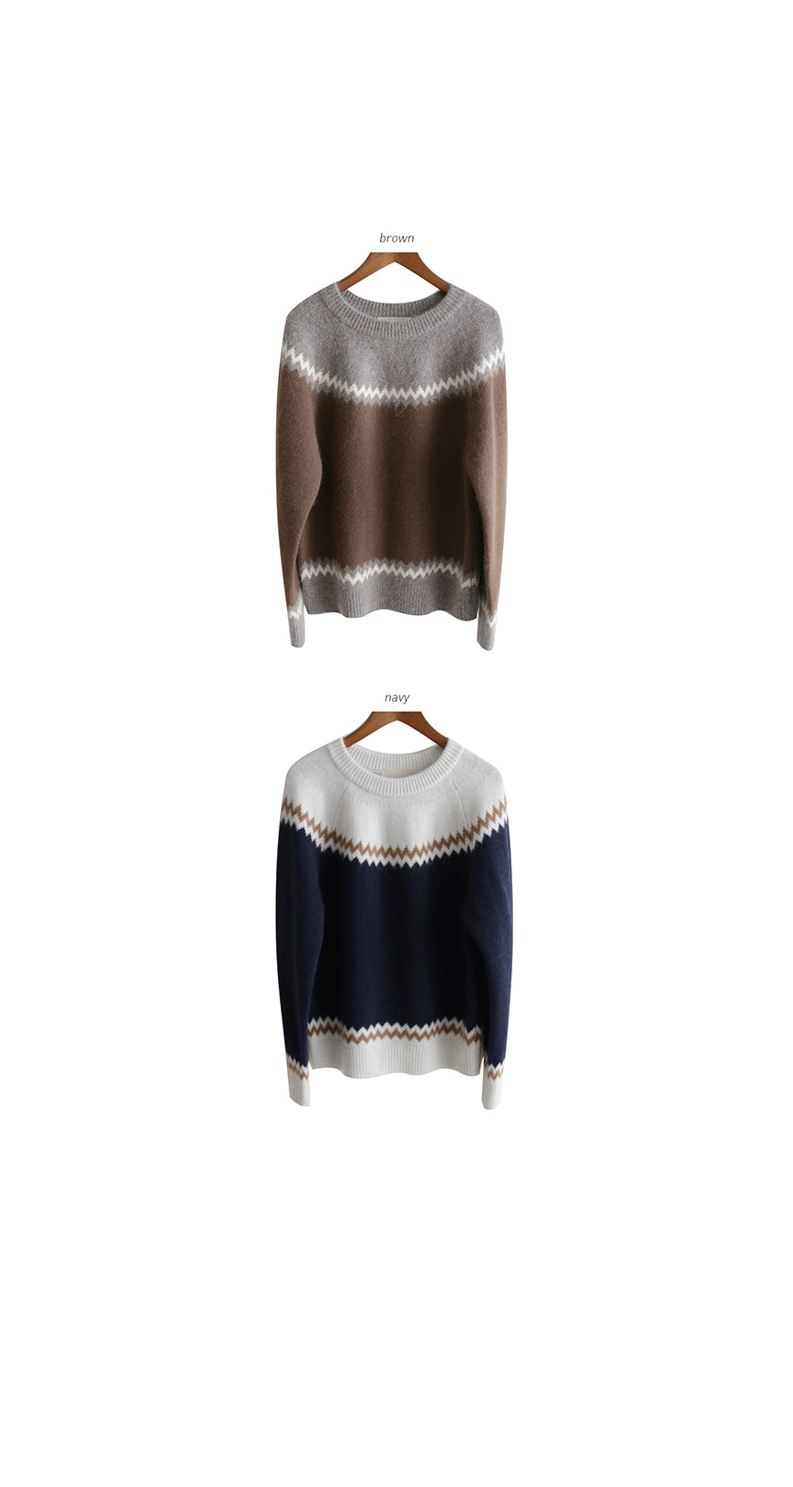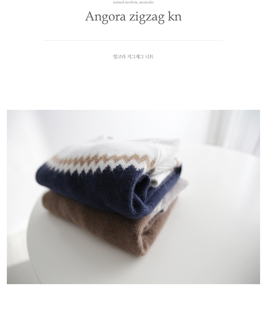 어깨선을 따라 소매단과 밑단에도 지그재그 패턴으로